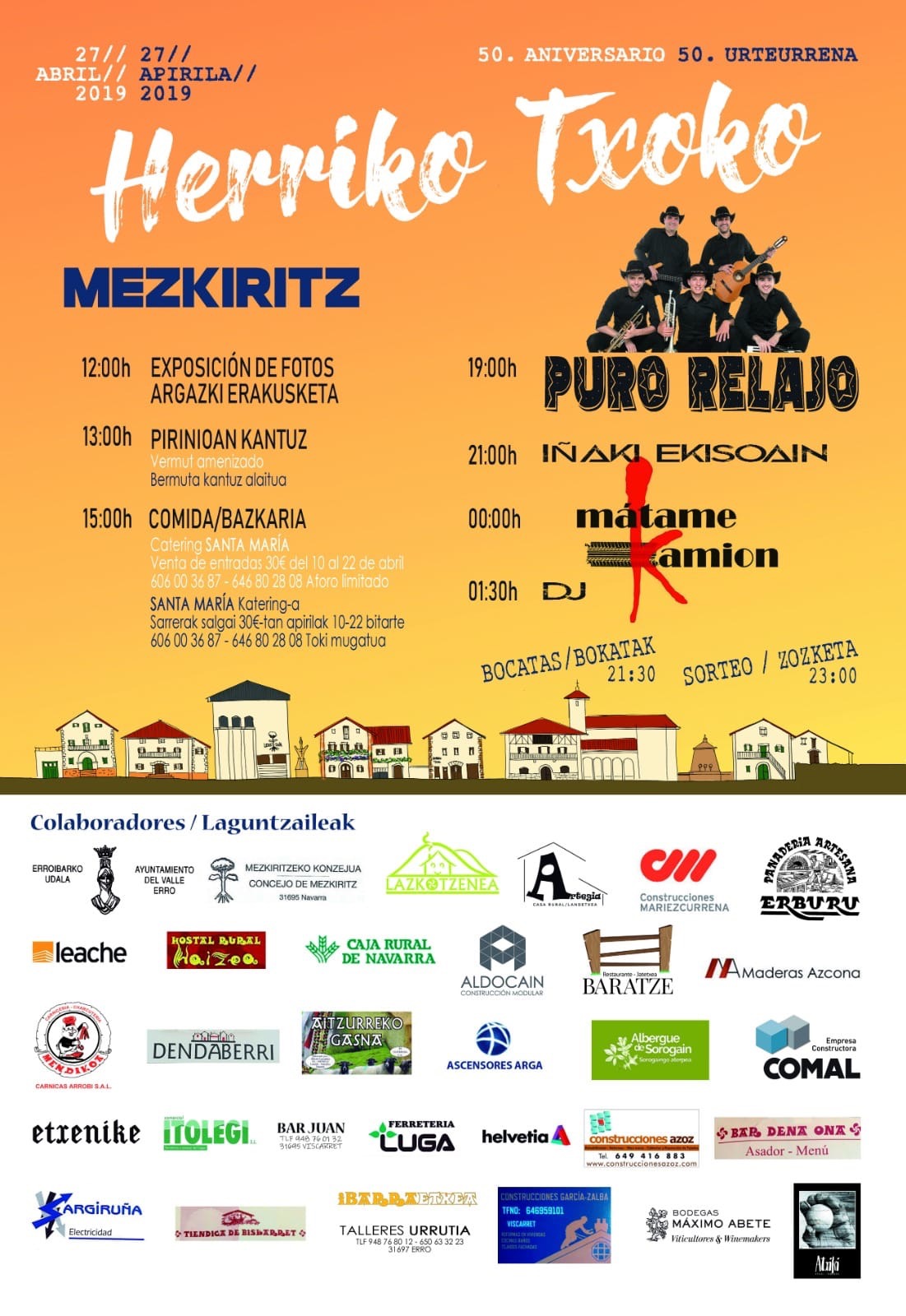 El próximo día 27 de Abril se celebra el 50 aniversario del Herriko Txoko de Mezkiritz.